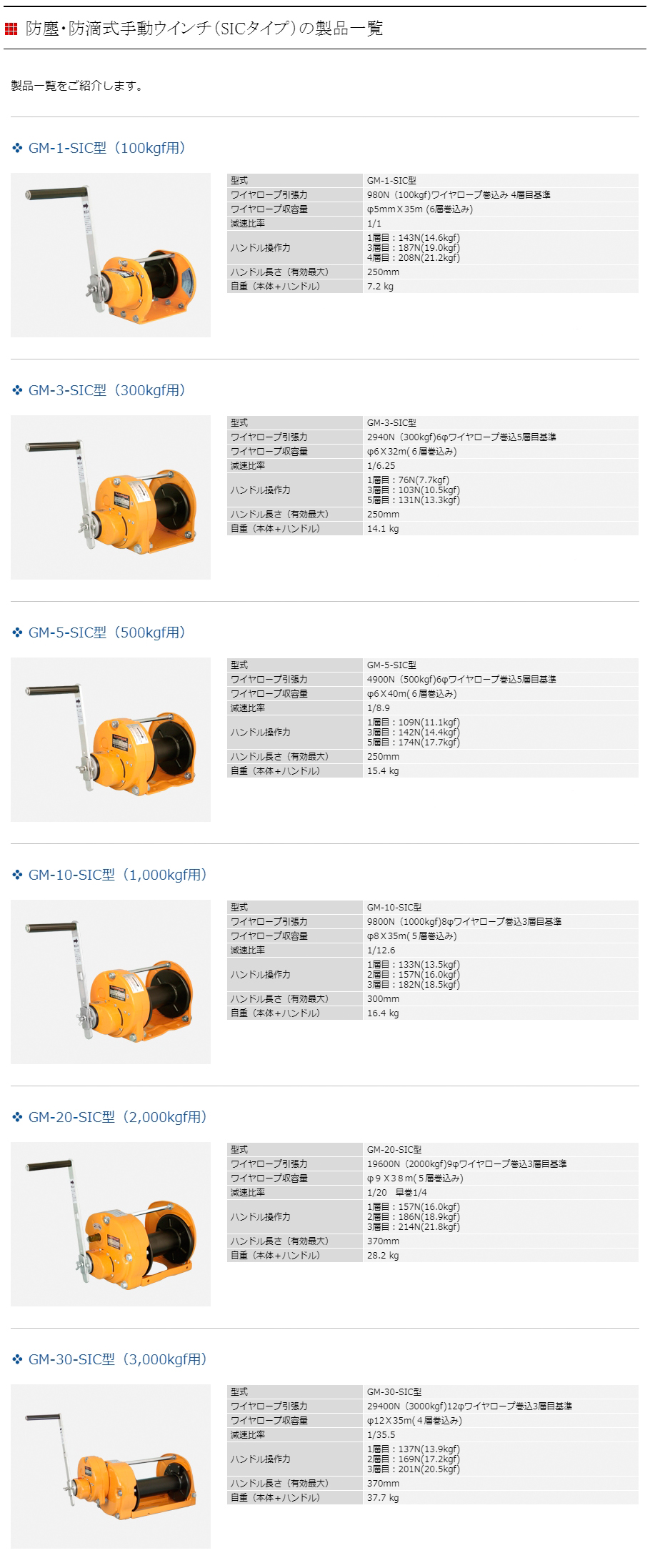 MAXPULL防塵防水手動絞車GM-5-SIC型(500kgf用)