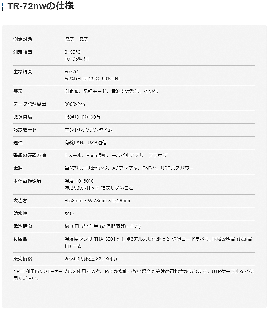 TANDD溫濕度數(shù)據(jù)記錄器TR-72nw