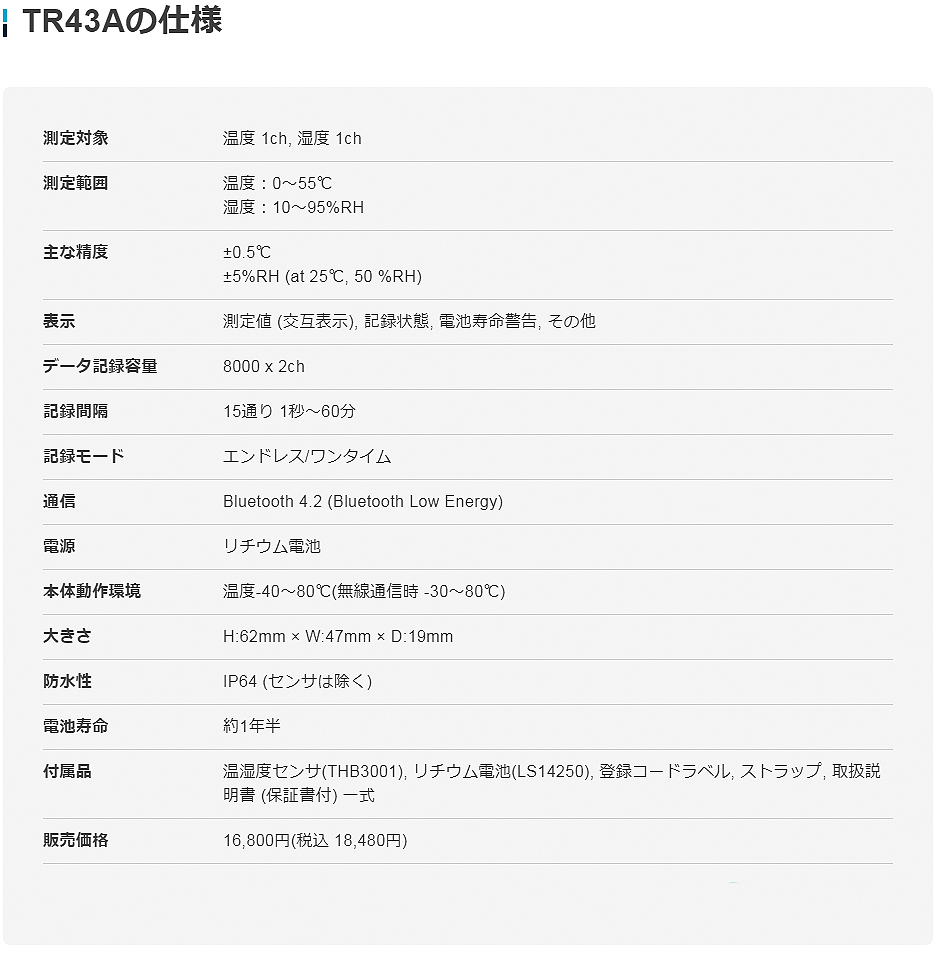 TANDD溫濕度數(shù)據(jù)記錄器TR43A