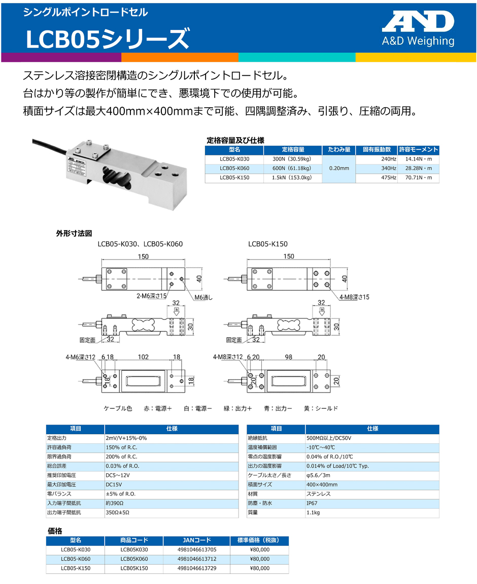AND(A&D)稱重傳感器LCB05-K150