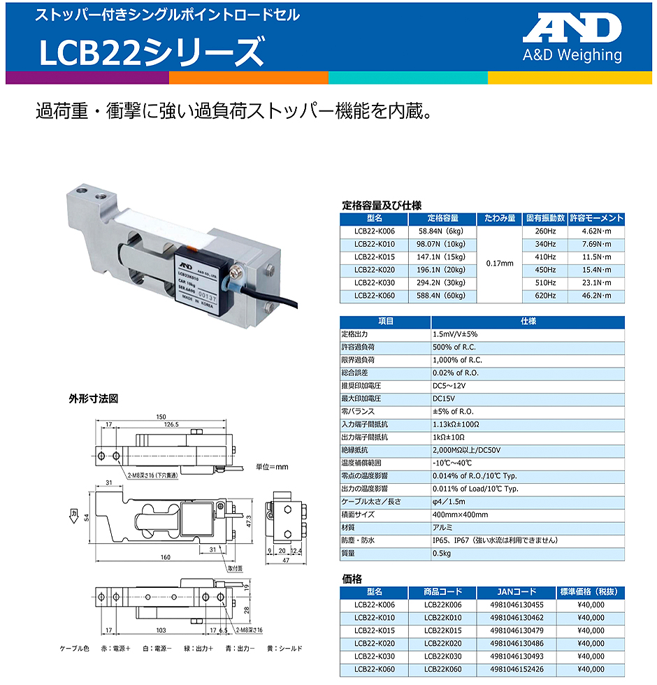 AND(A&D)稱重傳感器LCB22-K030
