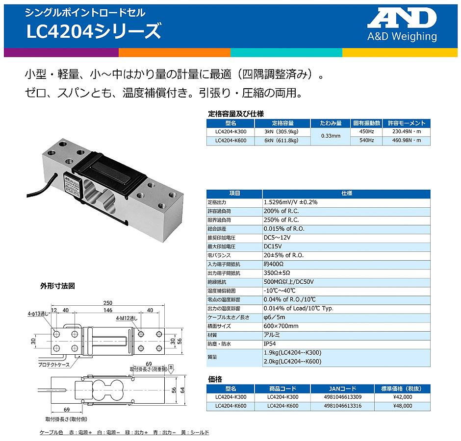 AND(A&D)稱重傳感器LC4204-K600