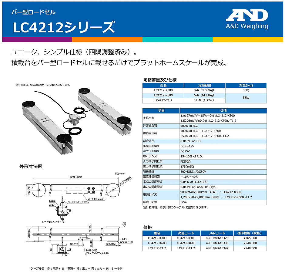 AND(A&D)稱重傳感器LC4212-K600