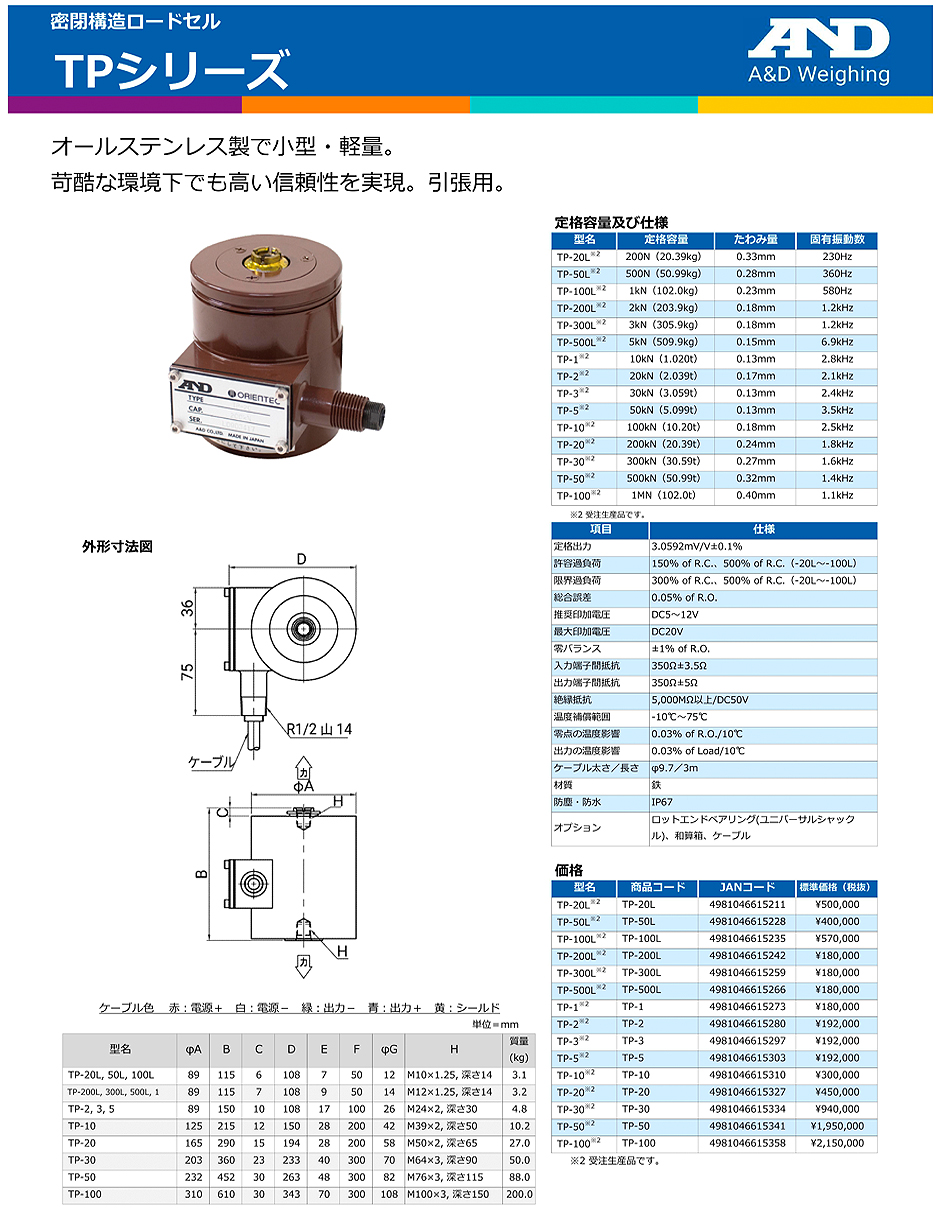 AND(A&D)負(fù)載傳感器TP-50