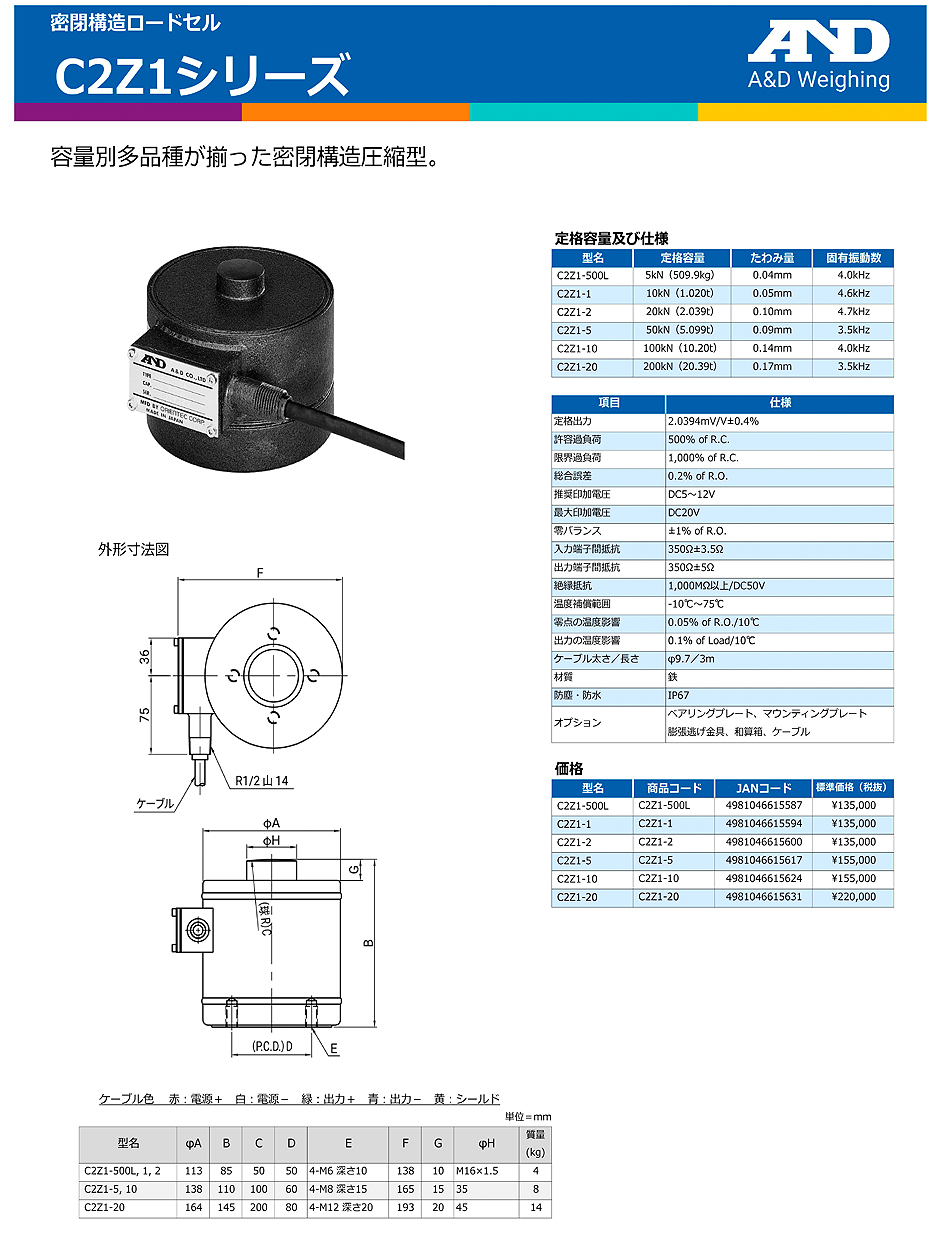 AND(A&D)負(fù)載傳感器C2Z1-500L