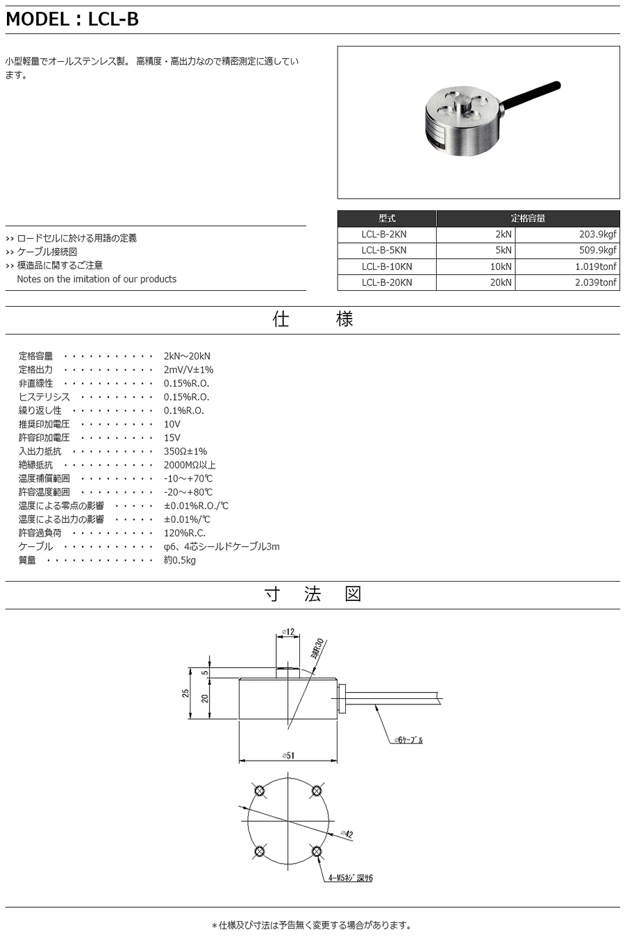 特殊測(cè)器荷重傳感器LCL-B-2KN