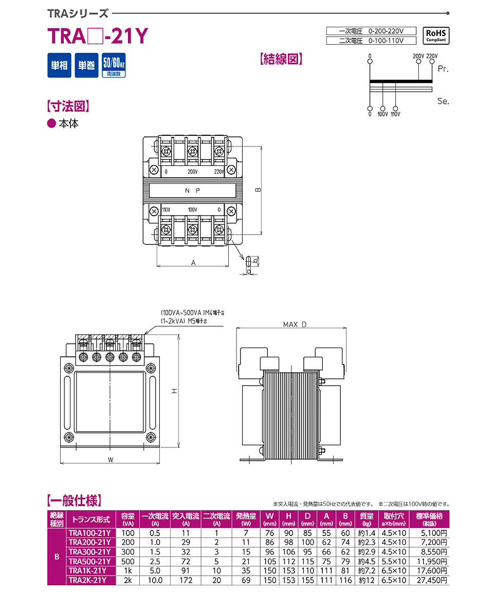 東洋技研變壓器TRA500-21Y