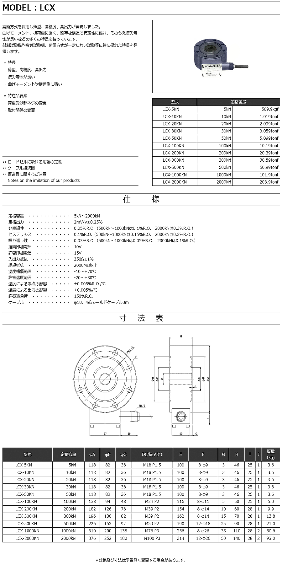 特殊測(cè)器荷重傳感器LCX-2000KN