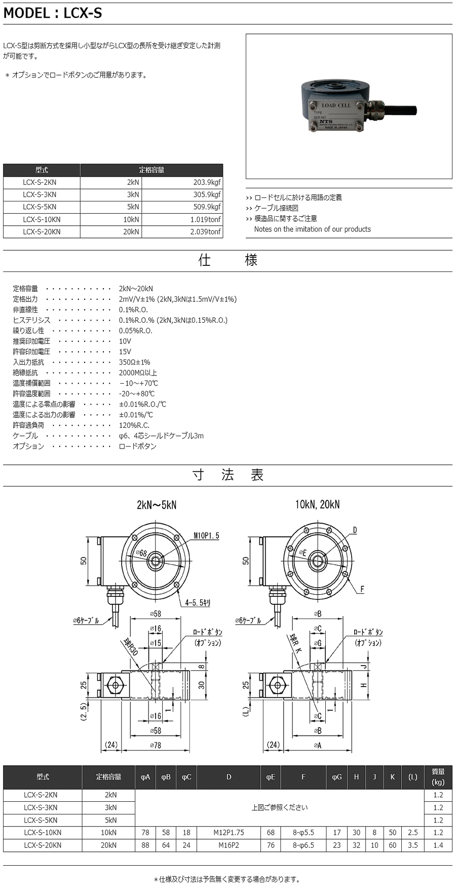 特殊測器荷重傳感器LCX-S-2KN