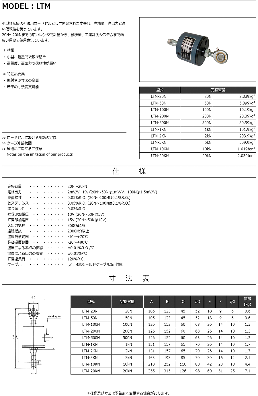 特殊測(cè)器高精度載荷傳感器LTM-500N