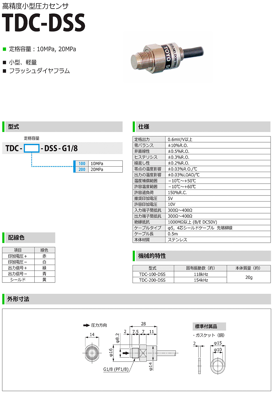 東洋測器壓力傳感器TDC-100-DSS-G1/8